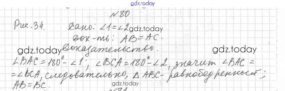 Ответы к Вариант 1 Решение к упражнениям 80 Дидактическим материалам по Геометрии для 7 класса Мерзляк, Полонский Вентана-граф Алгоритм успеха 2017