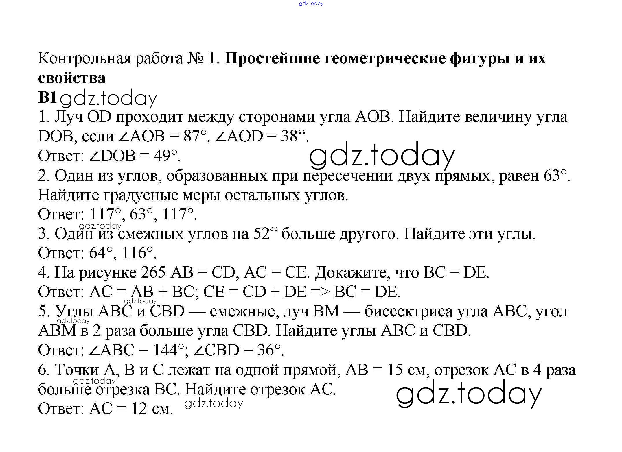 На страницах сайта gdz.today вы найдете учебный и вспомогательный материал, направленный на улучшения знаний школьной программы. ГДЗ - онлайн мир знаний Вариант 1 Решение к контрольным работам КР-1 Дидактическим материалам по Геометрии для 7 класса Мерзляк, Полонский Вентана-граф Алгоритм успеха 2017