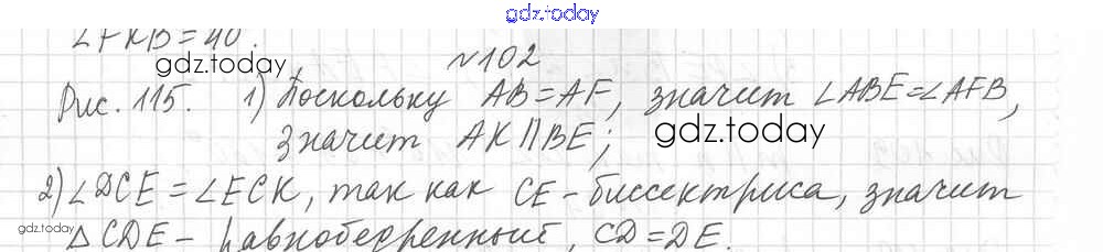 Ответы к Вариант 2 Решение к упражнениям 102 Дидактическим материалам по Геометрии для 7 класса Мерзляк, Полонский Вентана-граф Алгоритм успеха 2017