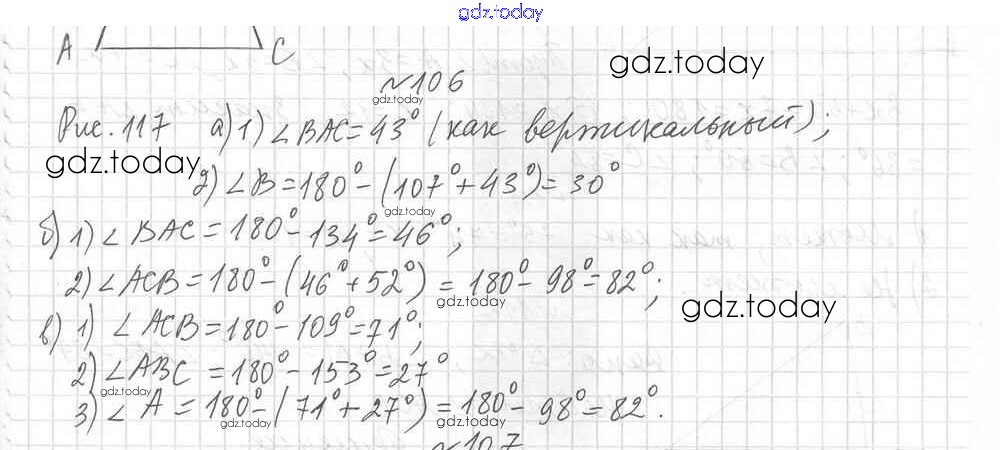 Ответы к Вариант 2 Решение к упражнениям 106 Дидактическим материалам по Геометрии для 7 класса Мерзляк, Полонский Вентана-граф Алгоритм успеха 2017