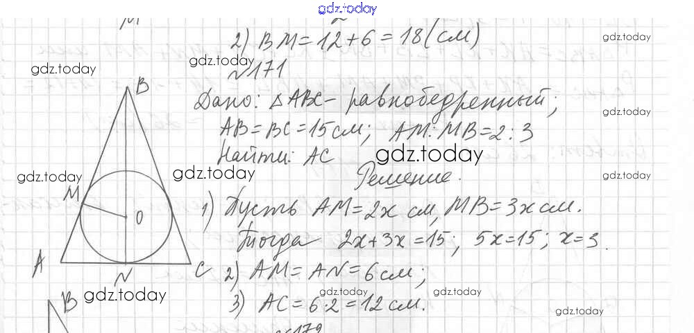 Ответы к Вариант 2 Решение к упражнениям 171 Дидактическим материалам по Геометрии для 7 класса Мерзляк, Полонский Вентана-граф Алгоритм успеха 2017