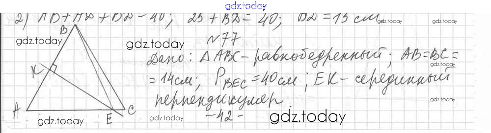 Ответы к Вариант 2 Решение к упражнениям 77 Дидактическим материалам по Геометрии для 7 класса Мерзляк, Полонский Вентана-граф Алгоритм успеха 2017