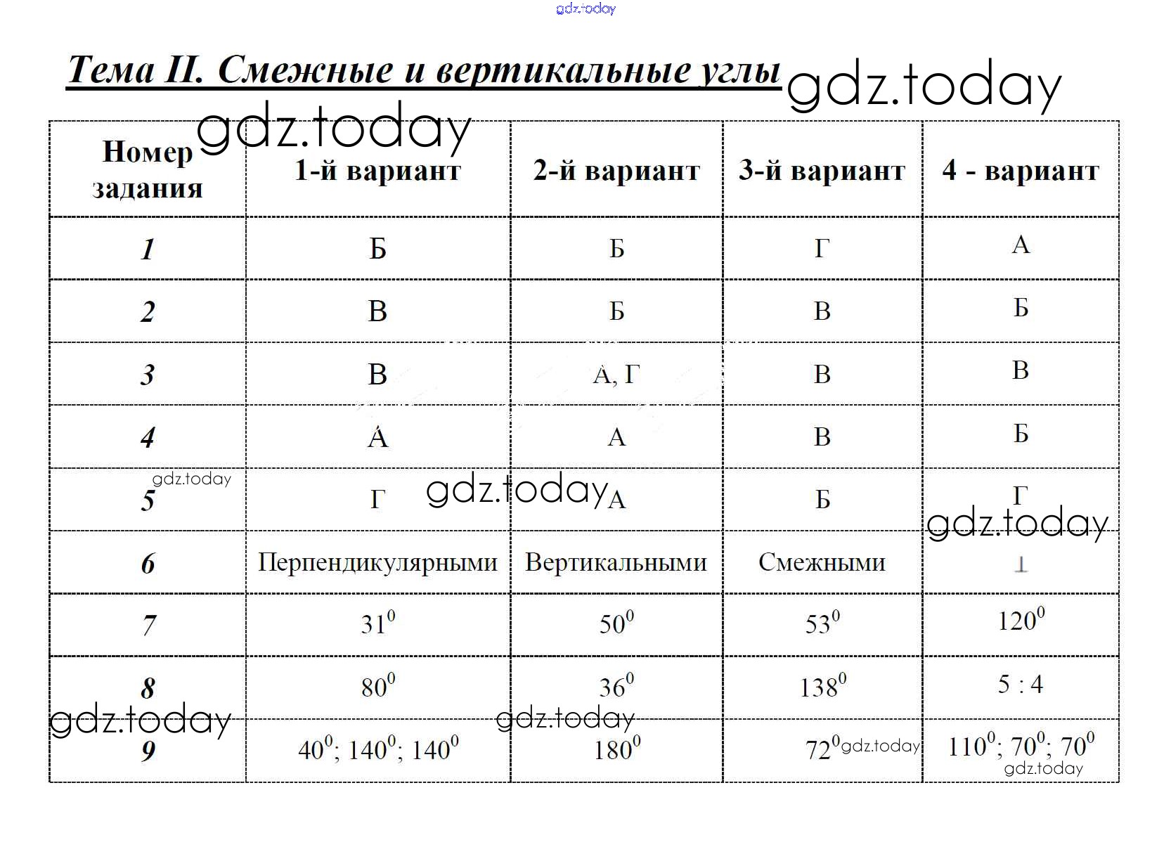 На страницах сайта gdz.today вы найдете учебный и вспомогательный материал, направленный на улучшения знаний школьной программы. ГДЗ - онлайн мир знаний Решение к темам Тема 2. Смежные и вертикальные углы Тестам по Геометрии для 7 класса Фарков Экзамен УМК 2017