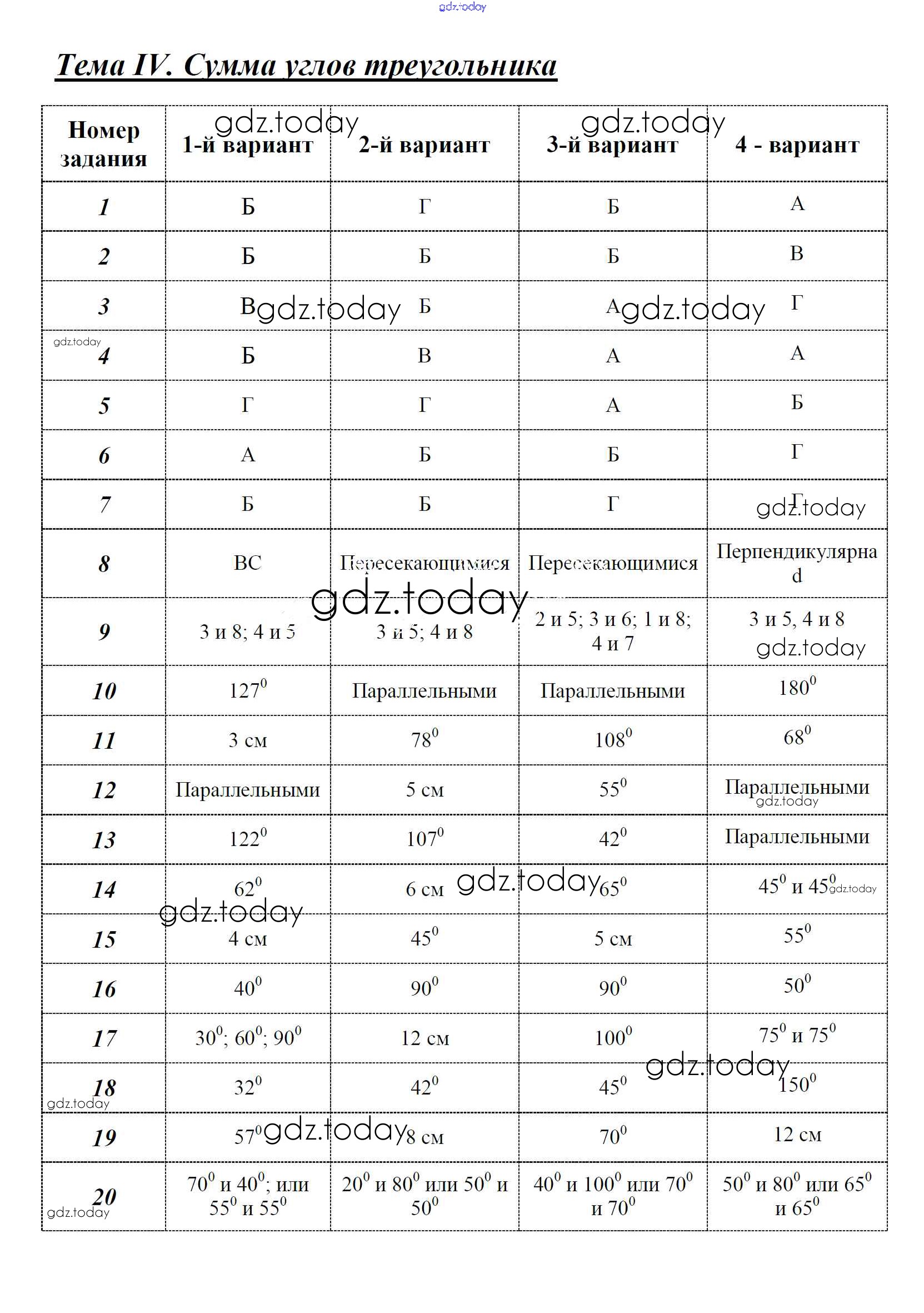 На страницах сайта gdz.today вы найдете учебный и вспомогательный материал, направленный на улучшения знаний школьной программы. ГДЗ - онлайн мир знаний Решение к темам Тема 4. Сумма углов треугольника Тестам по Геометрии для 7 класса Фарков Экзамен УМК 2017
