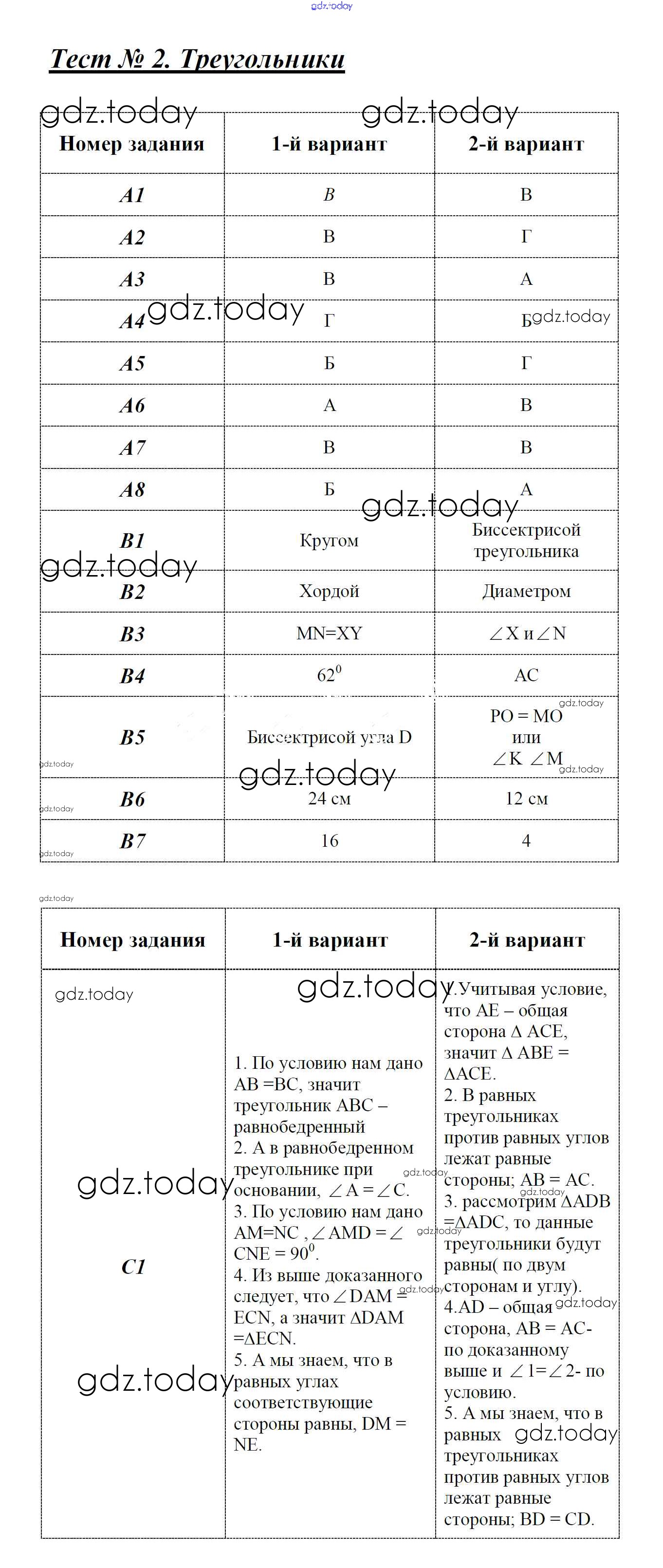 На страницах сайта gdz.today вы найдете учебный и вспомогательный материал, направленный на улучшения знаний школьной программы. ГДЗ - онлайн мир знаний Решение к тесту 2 Вариант 1 и 2 Тестам по Геометрии для 7 класса Фарков Экзамен УМК 2015