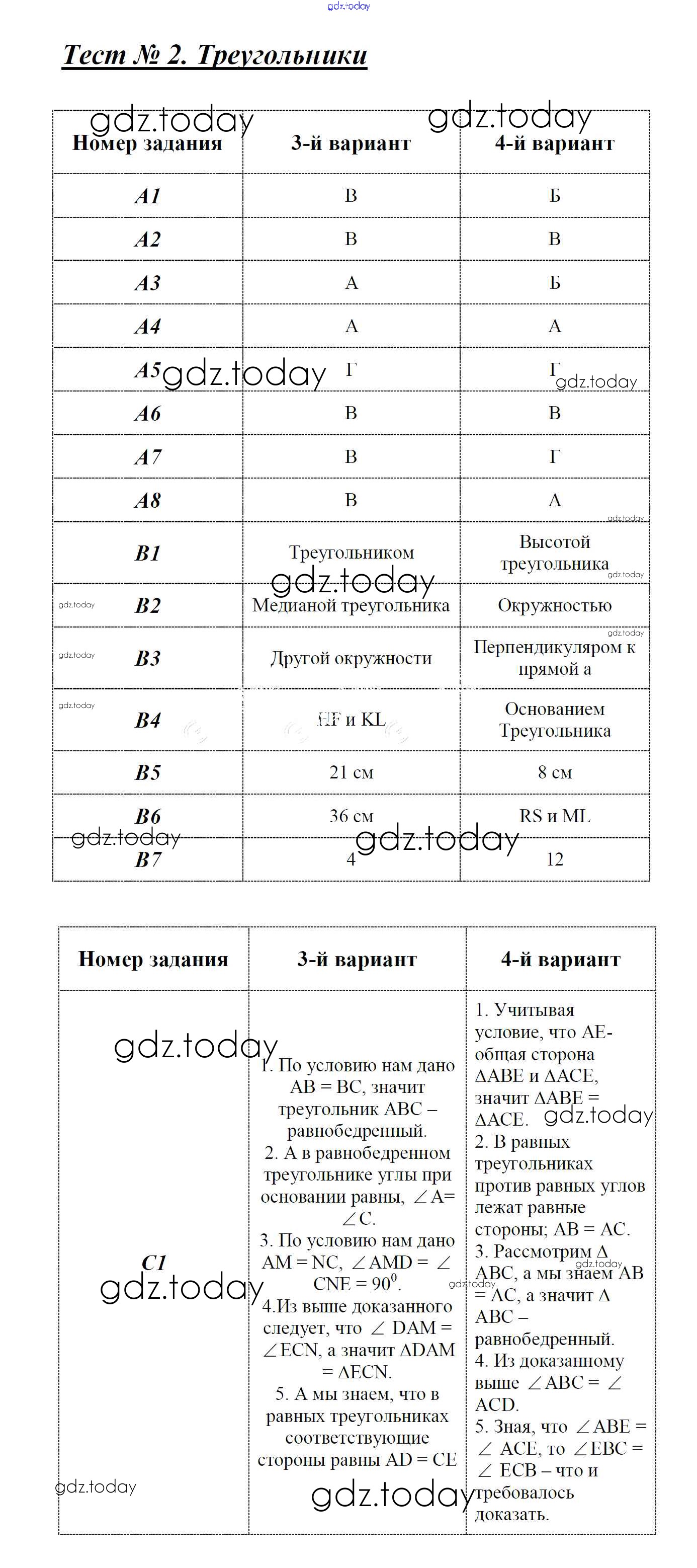 На страницах сайта gdz.today вы найдете учебный и вспомогательный материал, направленный на улучшения знаний школьной программы. ГДЗ - онлайн мир знаний Решение к тесту 2 Вариант 3 и 4 Тестам по Геометрии для 7 класса Фарков Экзамен УМК 2015
