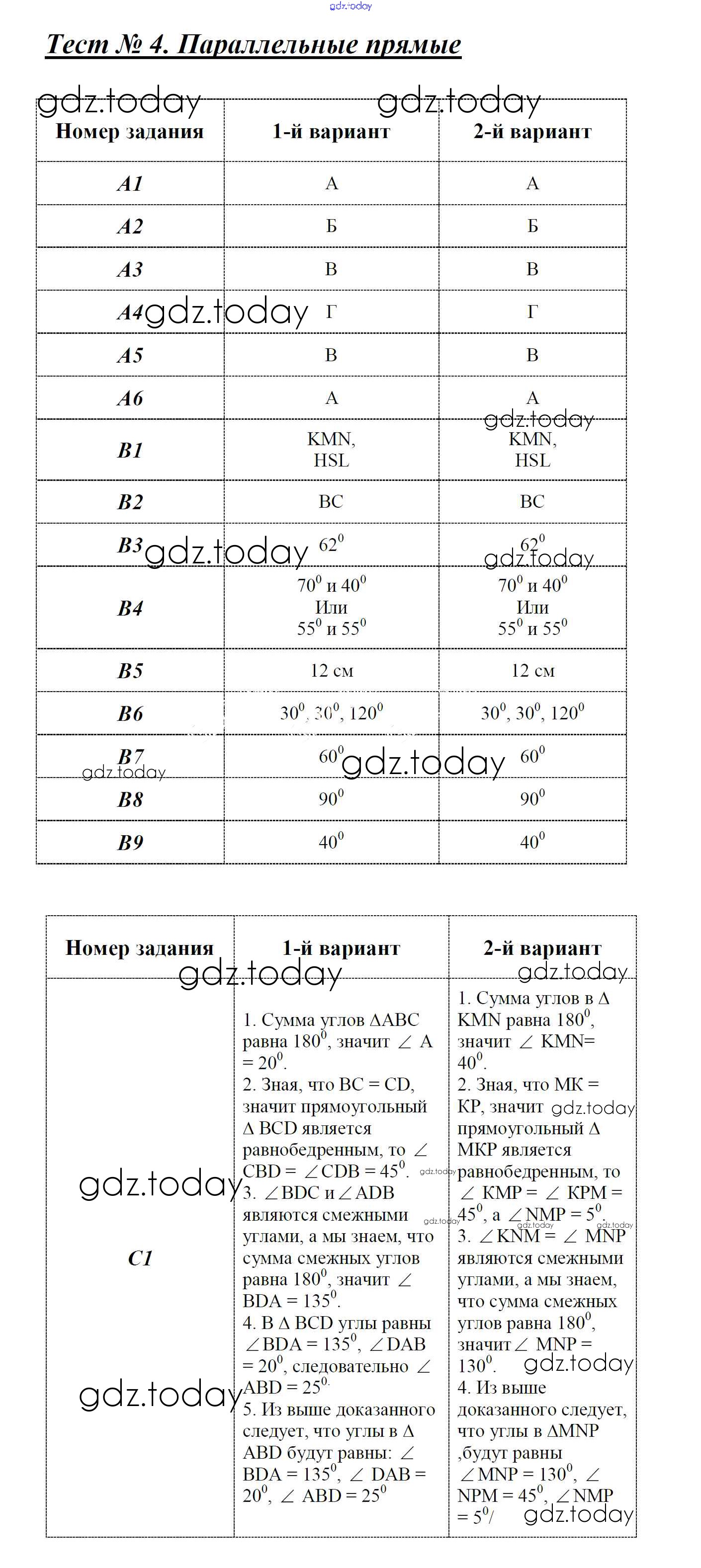 На страницах сайта gdz.today вы найдете учебный и вспомогательный материал, направленный на улучшения знаний школьной программы. ГДЗ - онлайн мир знаний Решение к тесту 4 Вариант 1 и 2 Тестам по Геометрии для 7 класса Фарков Экзамен УМК 2015
