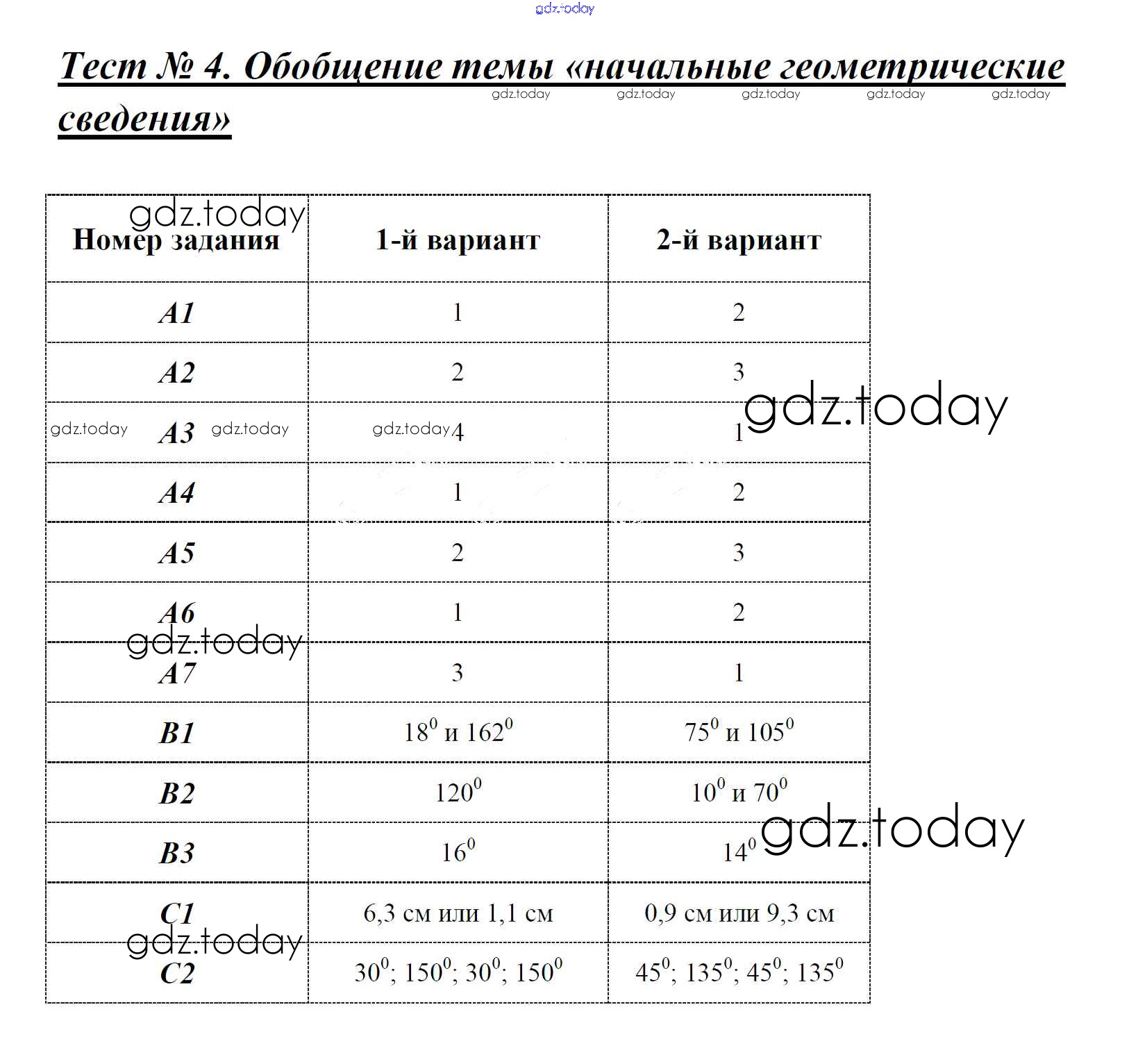 На страницах сайта gdz.today вы найдете учебный и вспомогательный материал, направленный на улучшения знаний школьной программы. ГДЗ - онлайн мир знаний Решение к тестам 4 Контрольно-измерительным материалам (КИМ) по Геометрии для 7 класса Гаврилова ВАКО 2017