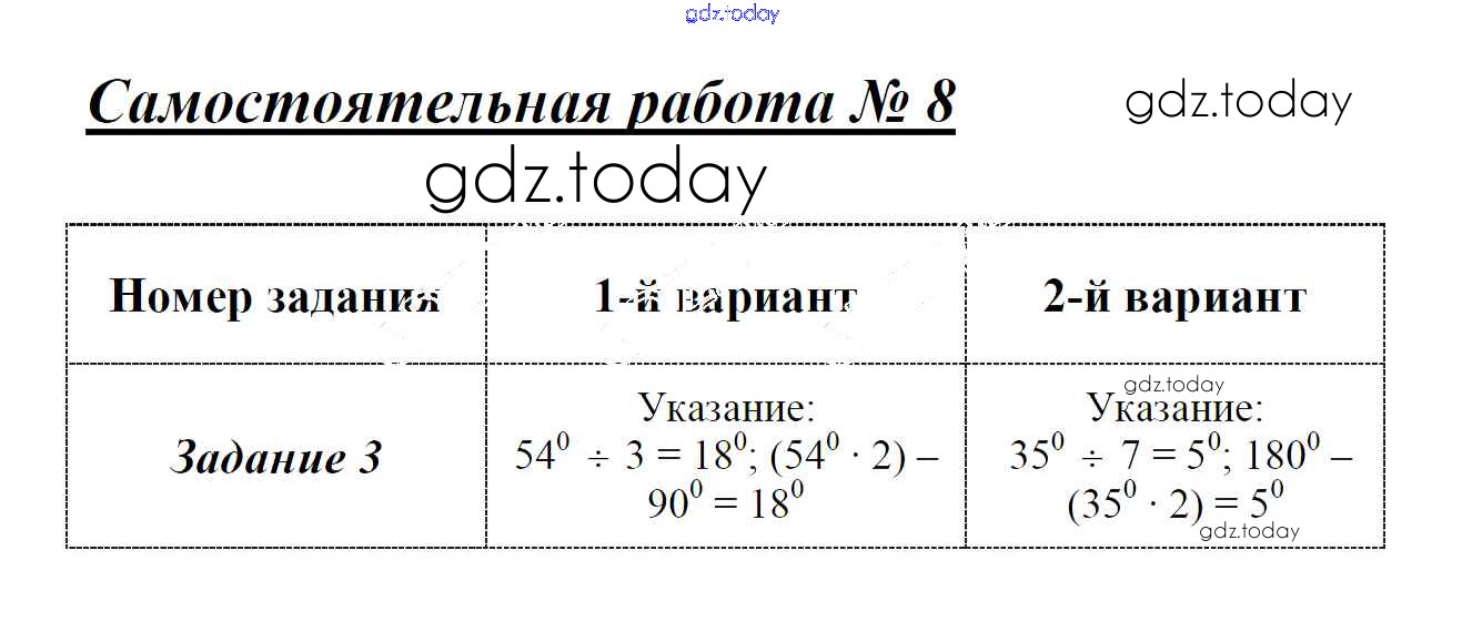 На страницах сайта gdz.today вы найдете учебный и вспомогательный материал, направленный на улучшения знаний школьной программы. ГДЗ - онлайн мир знаний Решение к самостоятельным работам 8 Контрольно-измерительным материалам (КИМ) по Геометрии для 7 класса Гаврилова ВАКО 2017