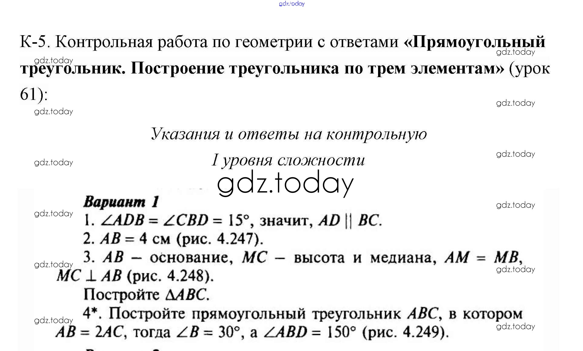 На страницах сайта gdz.today вы найдете учебный и вспомогательный материал, направленный на улучшения знаний школьной программы. ГДЗ - онлайн мир знаний Уровень 1 Решение к контрольной работе №5 (Уровни) 1 Поурочным разработкам по Геометрии для 7 класса Гаврилова ВАКО 2020