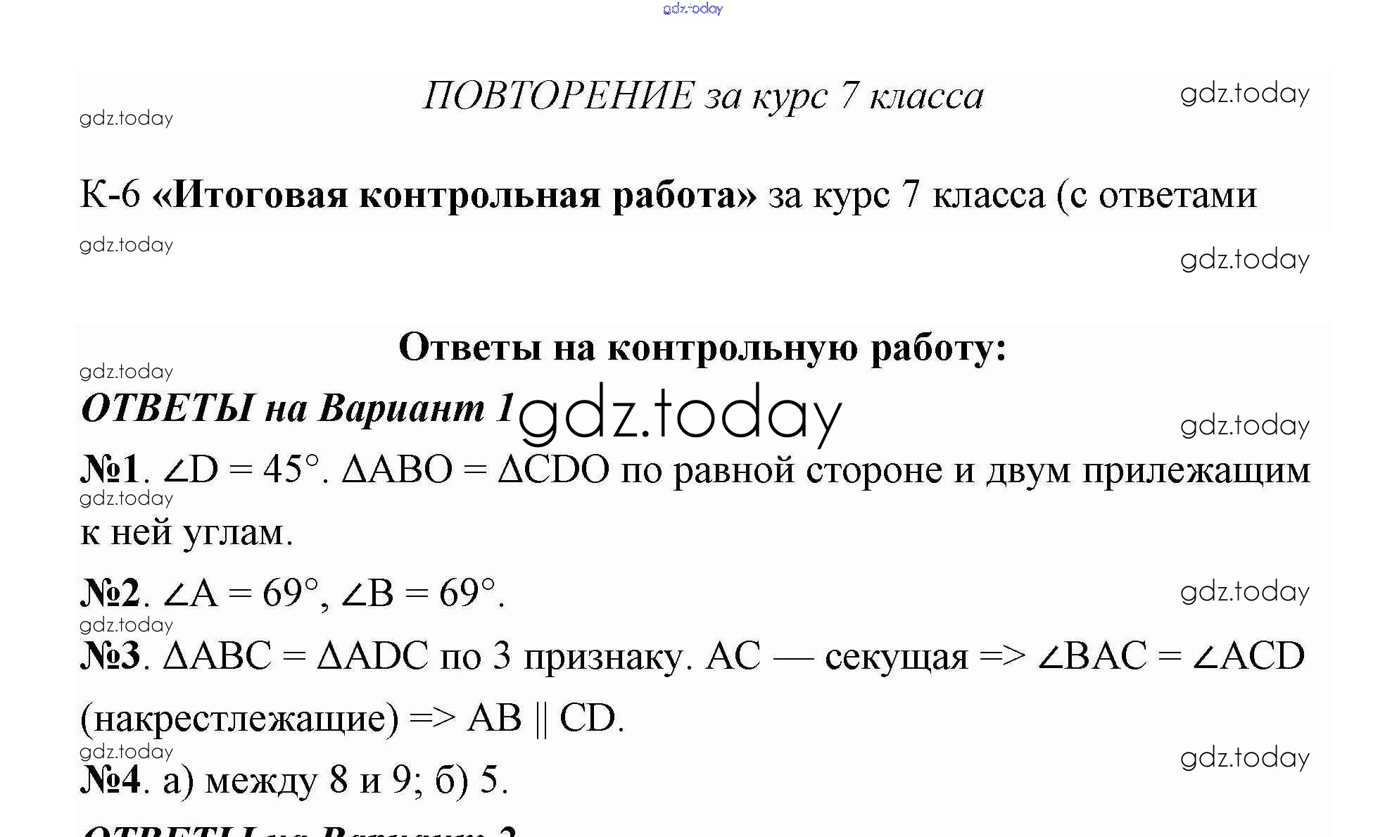 На страницах сайта gdz.today вы найдете учебный и вспомогательный материал, направленный на улучшения знаний школьной программы. ГДЗ - онлайн мир знаний Решение к итоговой контрольной работе (Варианты) 1 Поурочным разработкам по Геометрии для 7 класса Гаврилова ВАКО 2020