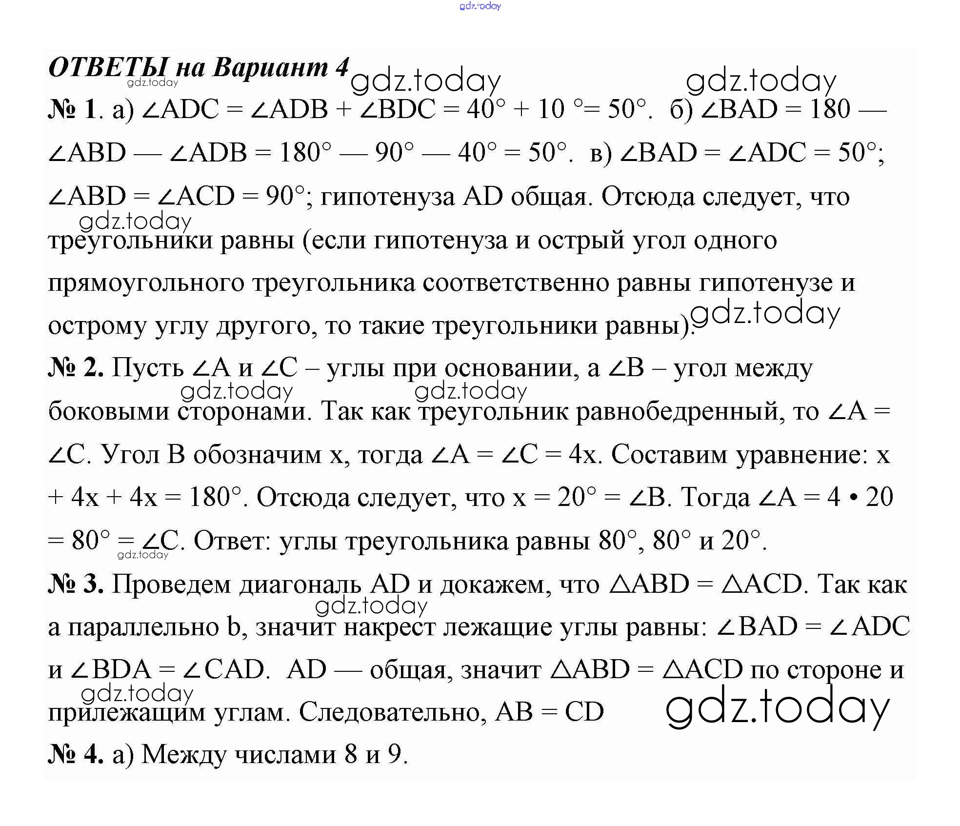 На страницах сайта gdz.today вы найдете учебный и вспомогательный материал, направленный на улучшения знаний школьной программы. ГДЗ - онлайн мир знаний Решение к итоговой контрольной работе (Варианты) 4 Поурочным разработкам по Геометрии для 7 класса Гаврилова ВАКО 2020