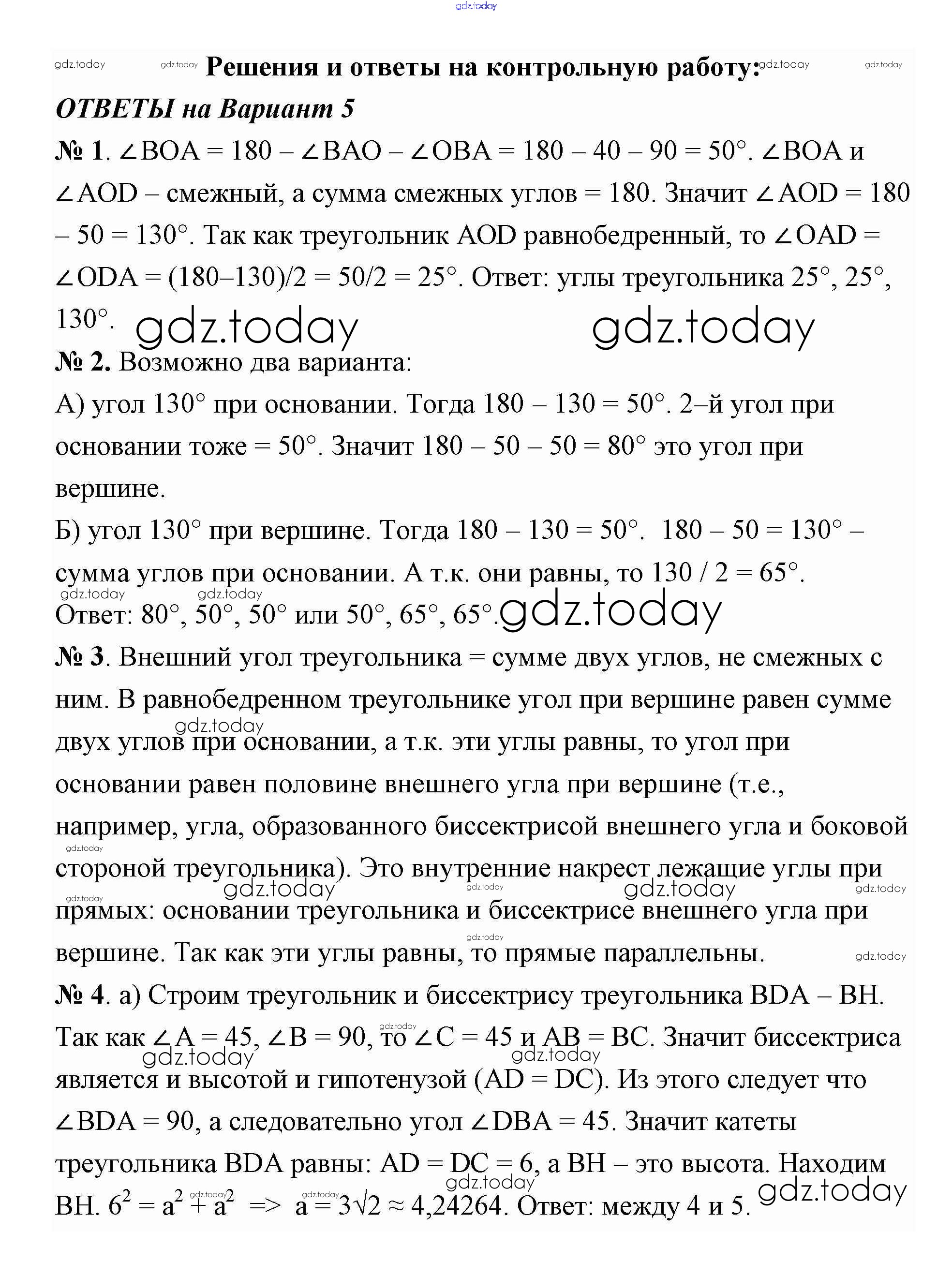 Ответы к Решение к итоговой контрольной работе (Варианты) 5 Поурочным разработкам по Геометрии для 7 класса Гаврилова ВАКО 2020