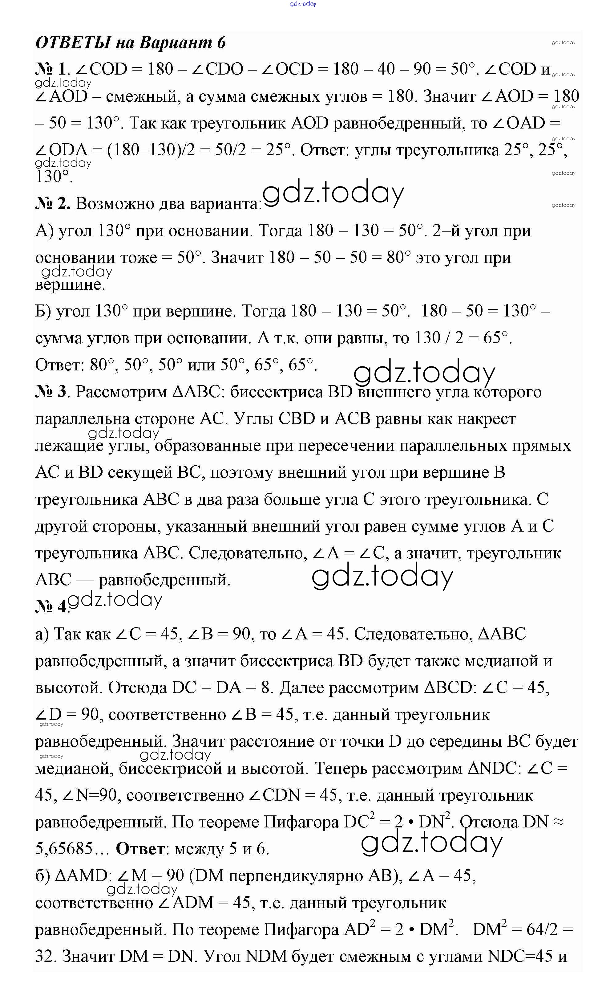 Ответы к Решение к итоговой контрольной работе (Варианты) 6 Поурочным разработкам по Геометрии для 7 класса Гаврилова ВАКО 2020