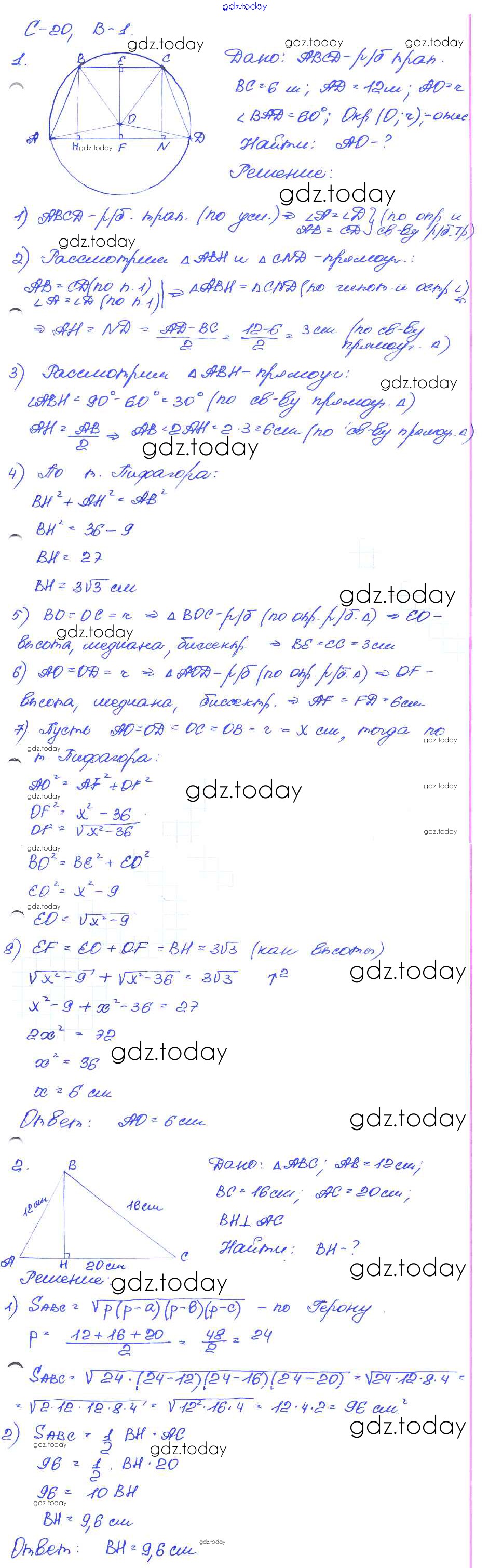 На страницах сайта gdz.today вы найдете учебный и вспомогательный материал, направленный на улучшения знаний школьной программы. ГДЗ - онлайн мир знаний СР-20. Варианты Самостоятельные работы 1 Самостоятельным и контрольным работам по Геометрии для 7-9 класса Иченская Просвещение 2017