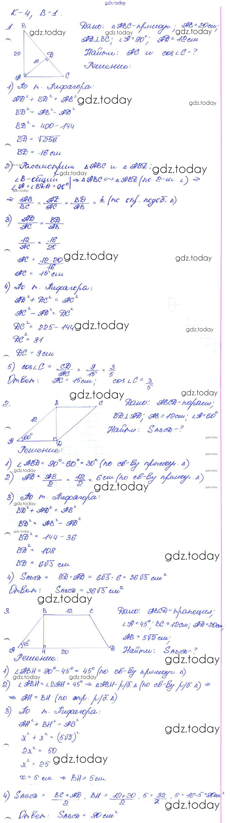 На страницах сайта gdz.today вы найдете учебный и вспомогательный материал, направленный на улучшения знаний школьной программы. ГДЗ - онлайн мир знаний КР-4. Варианты Контрольные работы 1 Самостоятельным и контрольным работам по Геометрии для 7-9 класса Иченская Просвещение 2017