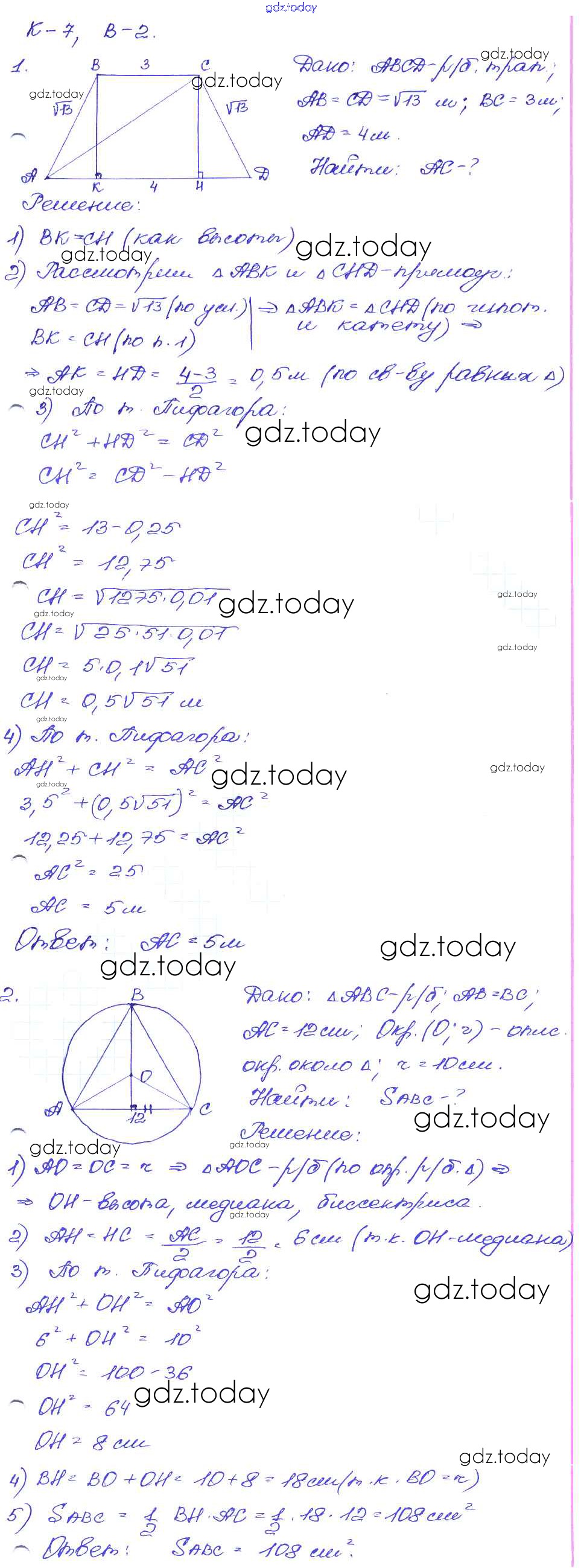 На страницах сайта gdz.today вы найдете учебный и вспомогательный материал, направленный на улучшения знаний школьной программы. ГДЗ - онлайн мир знаний КР-7. Варианты Контрольные работы 2 Самостоятельным и контрольным работам по Геометрии для 7-9 класса Иченская Просвещение 2017