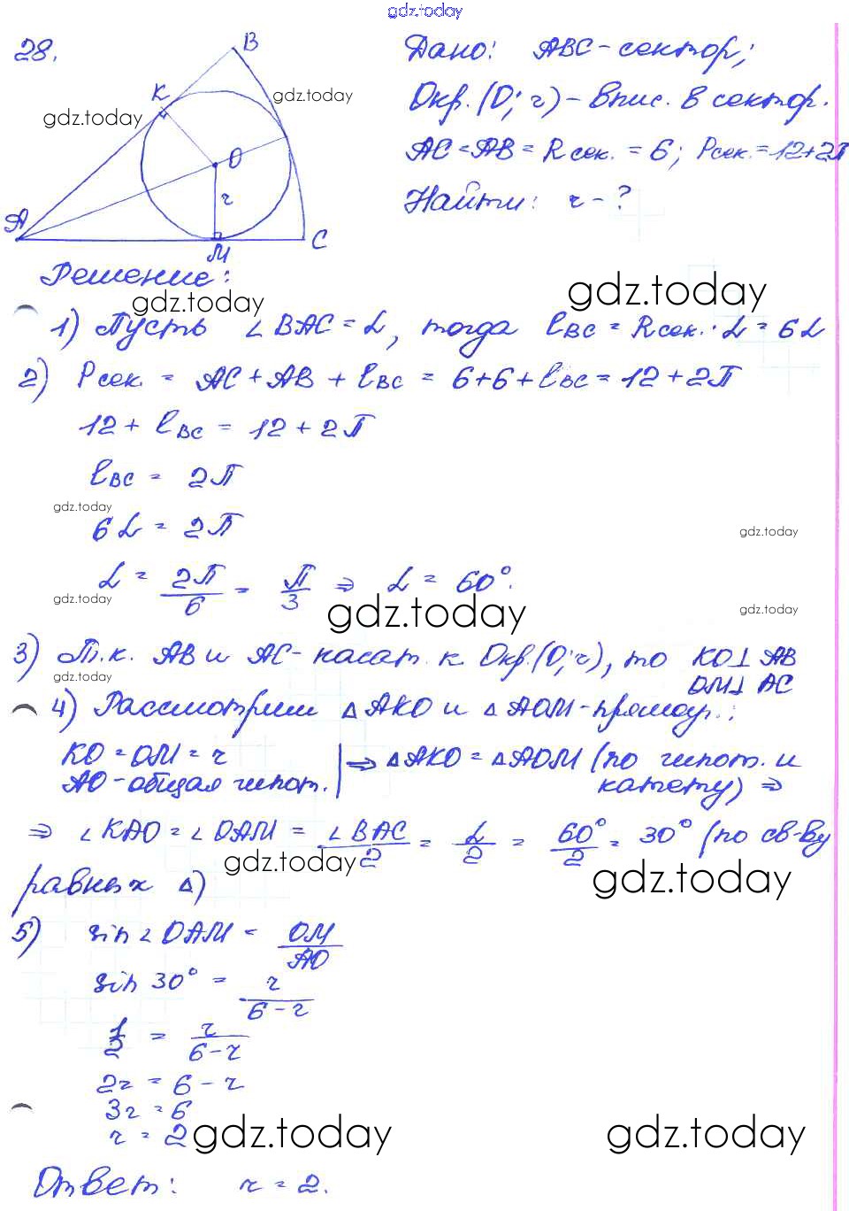 На страницах сайта gdz.today вы найдете учебный и вспомогательный материал, направленный на улучшения знаний школьной программы. ГДЗ - онлайн мир знаний Дополнительные задачи (решение) 28 Самостоятельным и контрольным работам по Геометрии для 7-9 класса Иченская Просвещение 2017