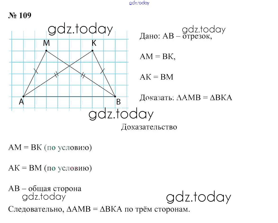 Ответы к Решение к задачам 109 Учебнику по Геометрии для 7 класса Казаков Народная асвета 2017