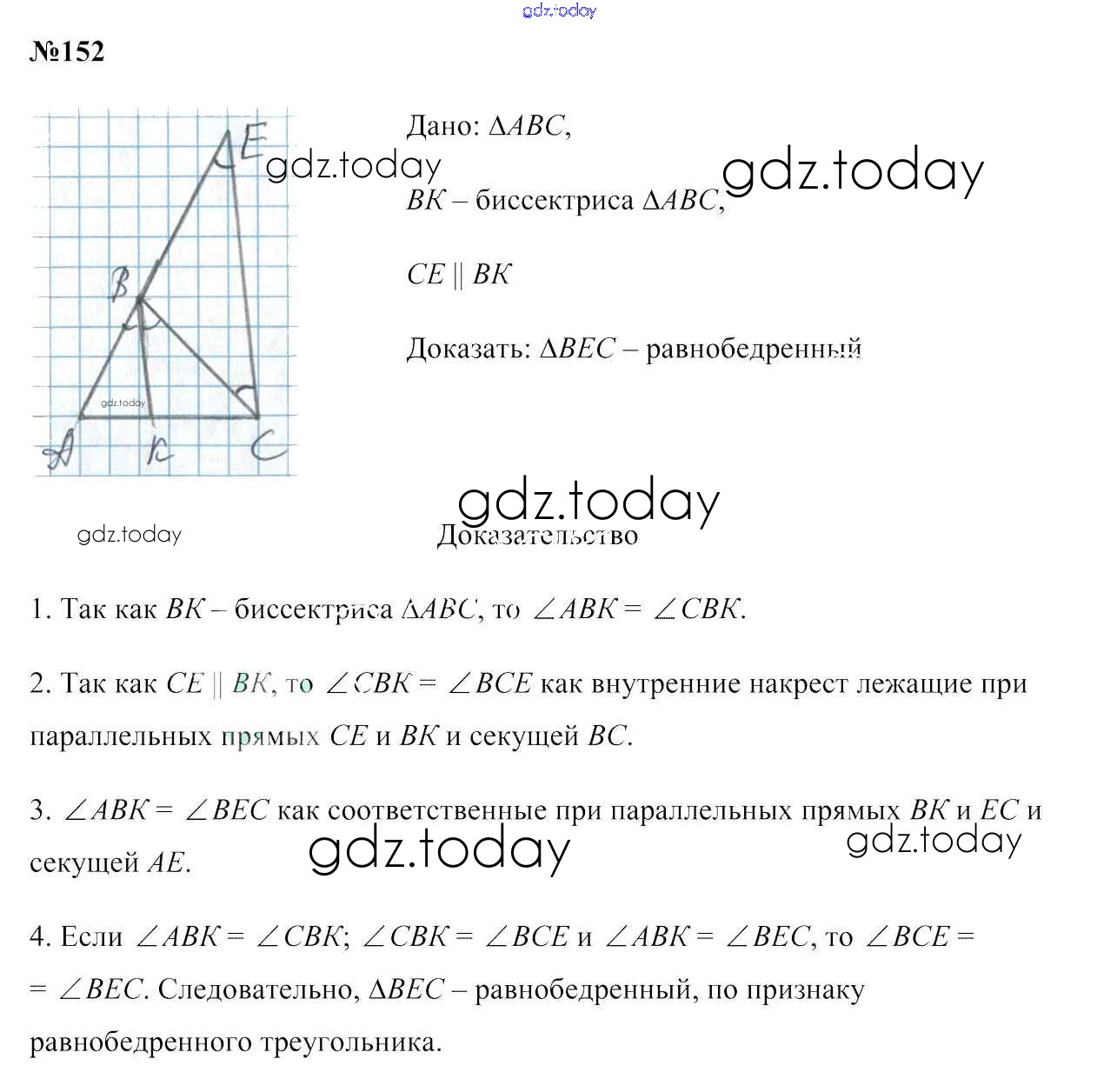 Ответы к Решение к задачам 152 Учебнику по Геометрии для 7 класса Казаков Народная асвета 2017