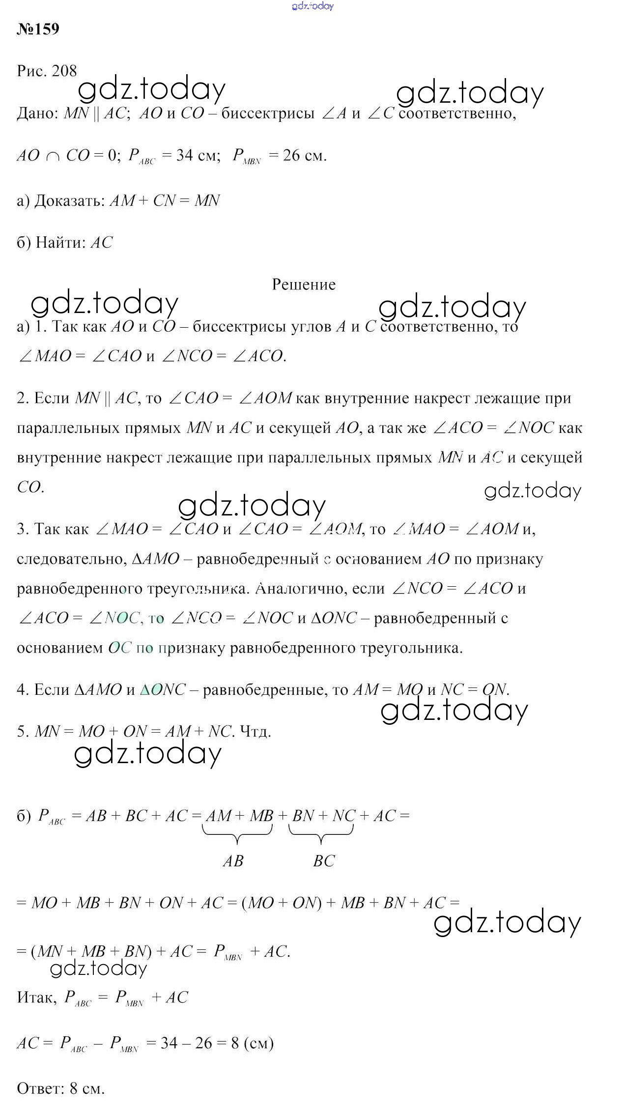 Ответы к Решение к задачам 159 Учебнику по Геометрии для 7 класса Казаков Народная асвета 2017