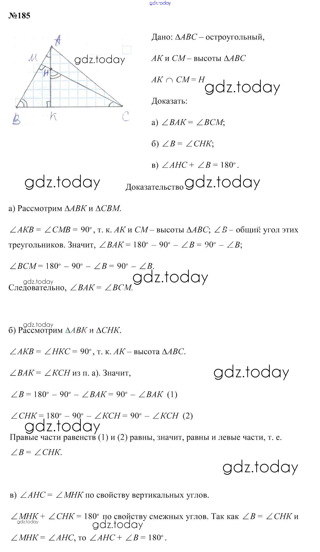 Ответы к Решение к задачам 185 Учебнику по Геометрии для 7 класса Казаков Народная асвета 2017