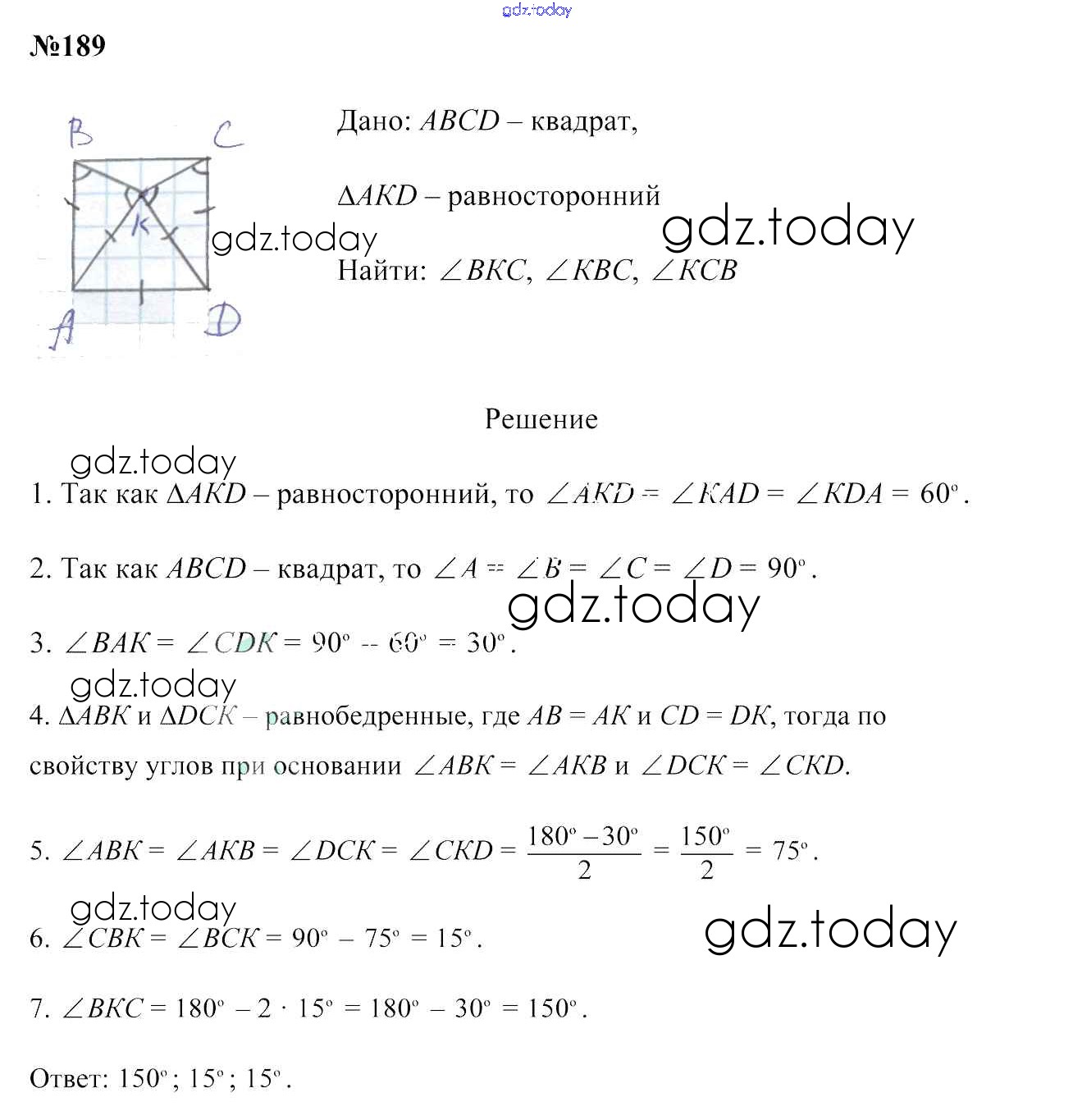 Ответы к Решение к задачам 189 Учебнику по Геометрии для 7 класса Казаков Народная асвета 2017