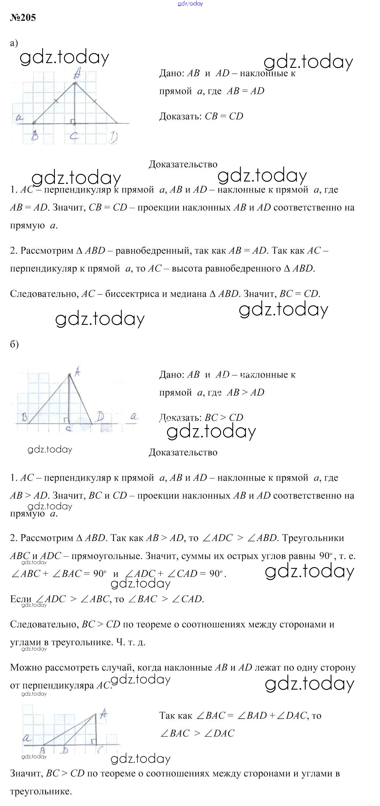 Ответы к Решение к задачам 205 Учебнику по Геометрии для 7 класса Казаков Народная асвета 2017