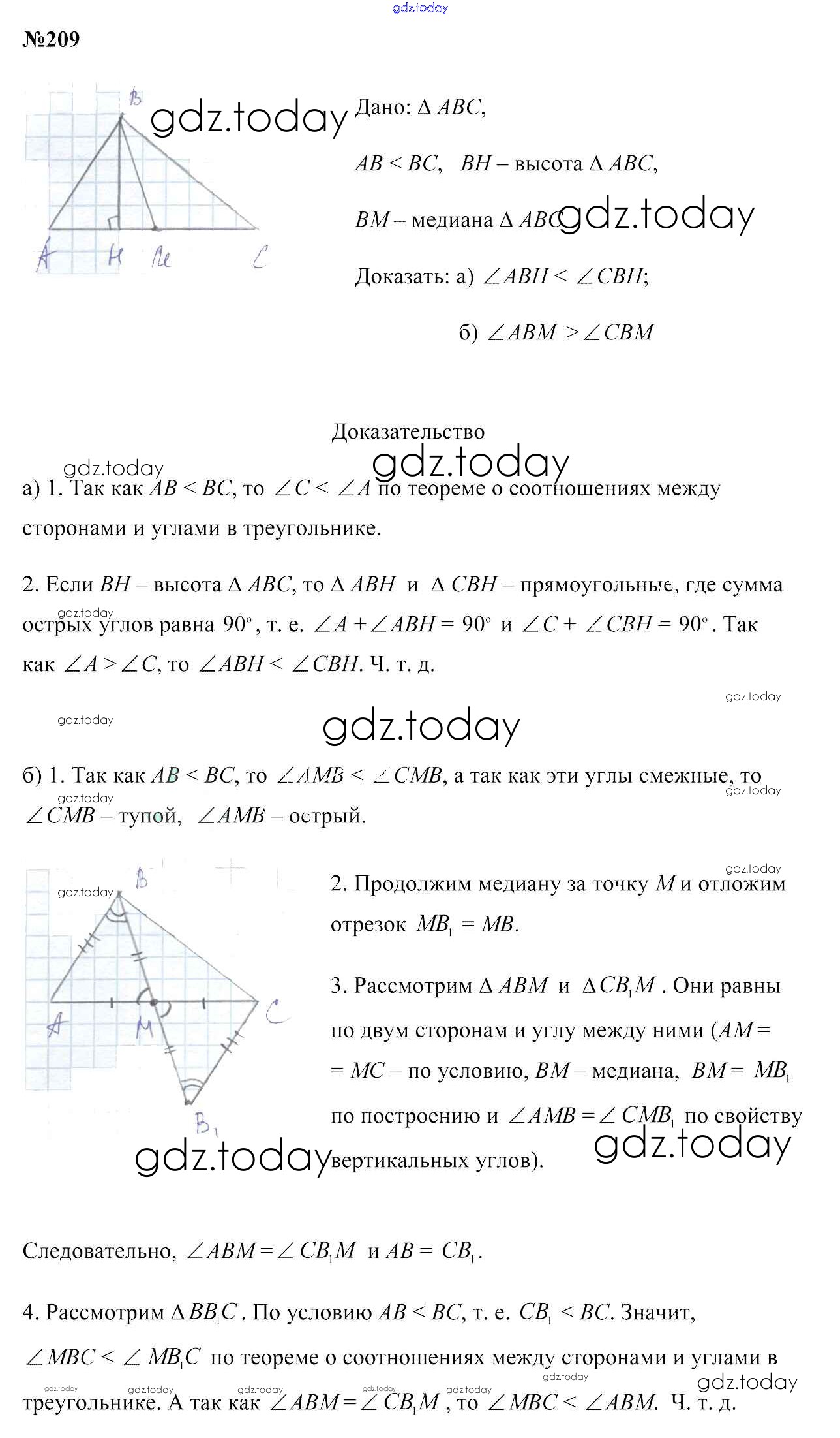 Ответы к Решение к задачам 209 Учебнику по Геометрии для 7 класса Казаков Народная асвета 2017