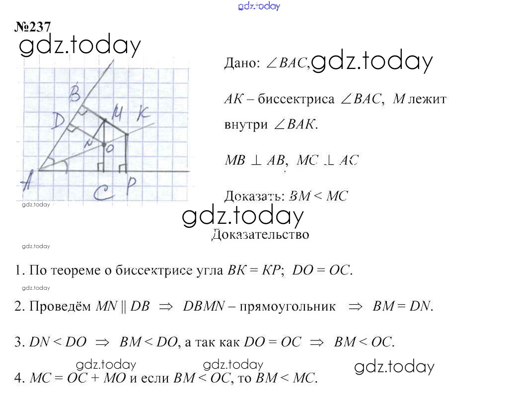 На страницах сайта gdz.today вы найдете учебный и вспомогательный материал, направленный на улучшения знаний школьной программы. ГДЗ - онлайн мир знаний Решение к задачам 237 Учебнику по Геометрии для 7 класса Казаков Народная асвета 2017