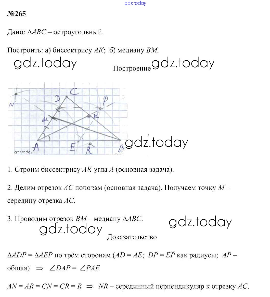 Ответы к Решение к задачам 265 Учебнику по Геометрии для 7 класса Казаков Народная асвета 2017