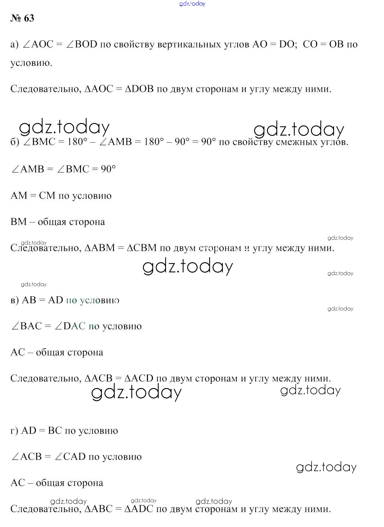 Ответы к Решение к задачам 63 Учебнику по Геометрии для 7 класса Казаков Народная асвета 2017