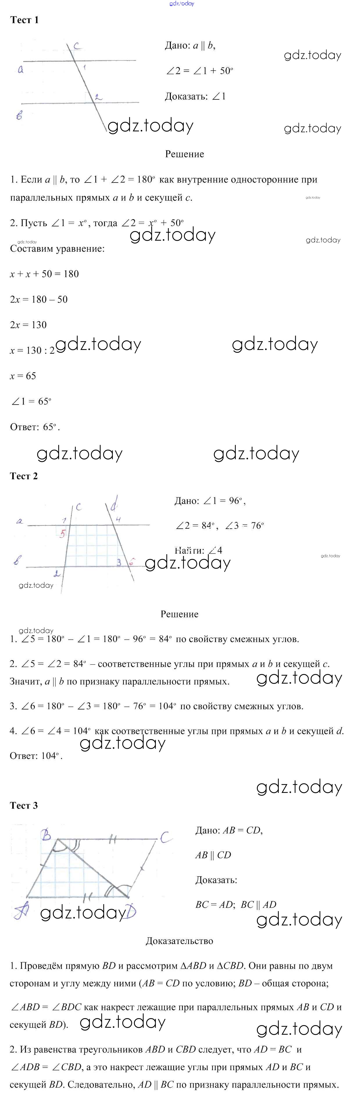Ответы к Решение к тестам стр.108 Учебнику по Геометрии для 7 класса Казаков Народная асвета 2017