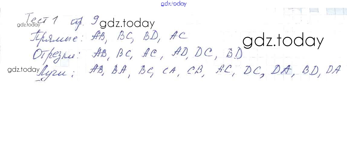 На страницах сайта gdz.today вы найдете учебный и вспомогательный материал, направленный на улучшения знаний школьной программы. ГДЗ - онлайн мир знаний Решение к тестам стр.9 Учебнику по Геометрии для 7 класса Казаков Народная асвета 2017