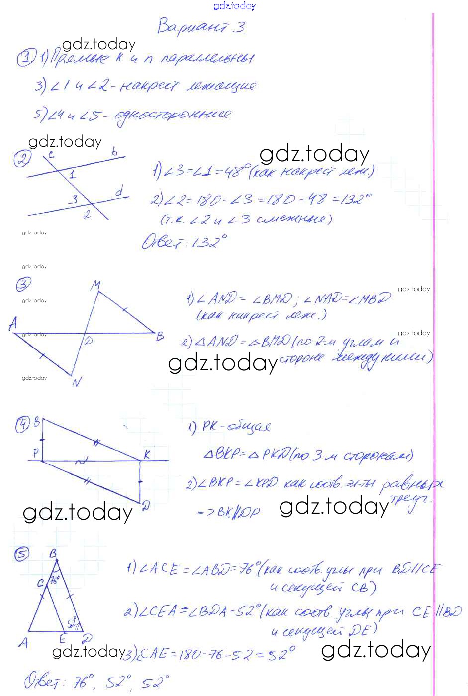 На страницах сайта gdz.today вы найдете учебный и вспомогательный материал, направленный на улучшения знаний школьной программы. ГДЗ - онлайн мир знаний Решение к контрольной работе №3. Варианты 3 Контрольным работам по Геометрии для 7 класса Мельникова Экзамен УМК 2016