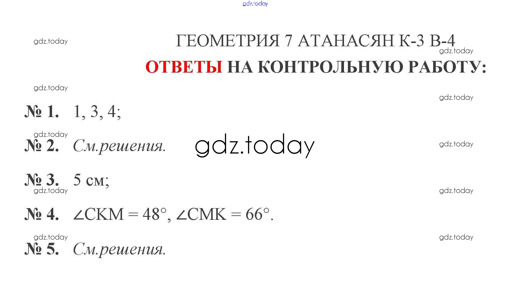 На страницах сайта gdz.today вы найдете учебный и вспомогательный материал, направленный на улучшения знаний школьной программы. ГДЗ - онлайн мир знаний Решение к контрольной работе №3. Варианты 4 Контрольным работам по Геометрии для 7 класса Мельникова Экзамен УМК 2016