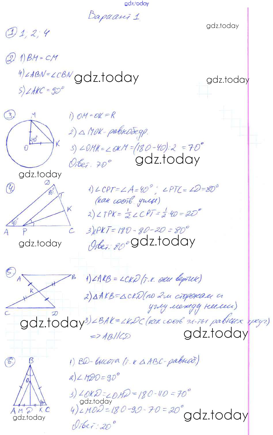 На страницах сайта gdz.today вы найдете учебный и вспомогательный материал, направленный на улучшения знаний школьной программы. ГДЗ - онлайн мир знаний Решение к контрольной работе №5. Варианты 1 Контрольным работам по Геометрии для 7 класса Мельникова Экзамен УМК 2016