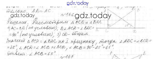 Ответы к §8. Первый и второй признак равенства треугольников Решение к главе 2. Треугольники 166 Учебнику по Геометрии для 7 класса Мерзляк, Полонский Вентана-граф Алгоритм успеха 2017