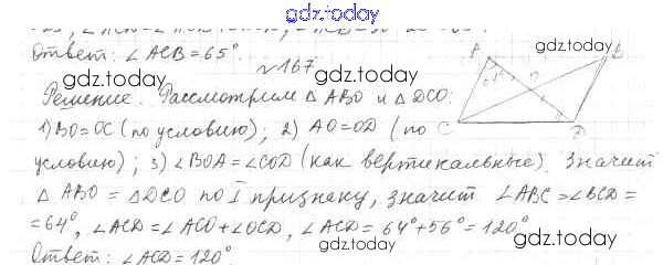 Ответы к §8. Первый и второй признак равенства треугольников Решение к главе 2. Треугольники 167 Учебнику по Геометрии для 7 класса Мерзляк, Полонский Вентана-граф Алгоритм успеха 2017