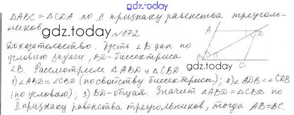 Ответы к §8. Первый и второй признак равенства треугольников Решение к главе 2. Треугольники 172 Учебнику по Геометрии для 7 класса Мерзляк, Полонский Вентана-граф Алгоритм успеха 2017