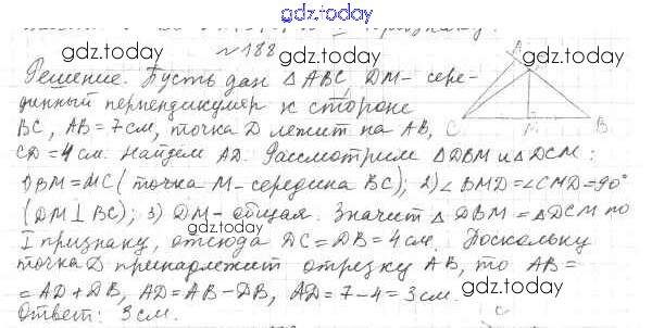 Ответы к §8. Первый и второй признак равенства треугольников Решение к главе 2. Треугольники 188 Учебнику по Геометрии для 7 класса Мерзляк, Полонский Вентана-граф Алгоритм успеха 2017