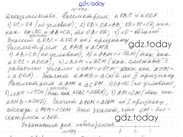 Ответы к §8. Первый и второй признак равенства треугольников Решение к главе 2. Треугольники 192 Учебнику по Геометрии для 7 класса Мерзляк, Полонский Вентана-граф Алгоритм успеха 2017