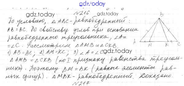 Ответы к §9. Равнобедренный треугольник и его свойства Решение к главе 2. Треугольники 216 Учебнику по Геометрии для 7 класса Мерзляк, Полонский Вентана-граф Алгоритм успеха 2017