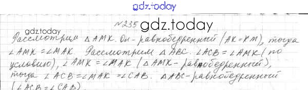 Ответы к §10. Признаки равнобедренного треугольника Решение к главе 2. Треугольники 235 Учебнику по Геометрии для 7 класса Мерзляк, Полонский Вентана-граф Алгоритм успеха 2017