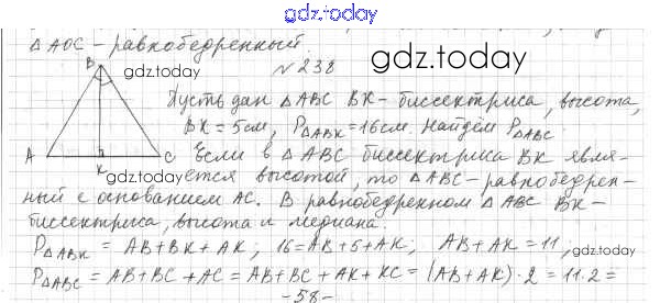 Ответы к §10. Признаки равнобедренного треугольника Решение к главе 2. Треугольники 238 Учебнику по Геометрии для 7 класса Мерзляк, Полонский Вентана-граф Алгоритм успеха 2017
