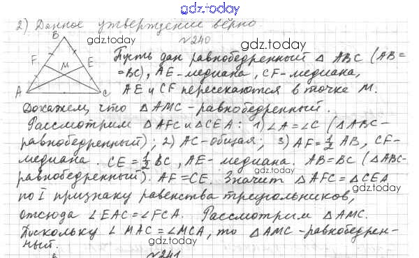 Ответы к §10. Признаки равнобедренного треугольника Решение к главе 2. Треугольники 240 Учебнику по Геометрии для 7 класса Мерзляк, Полонский Вентана-граф Алгоритм успеха 2017