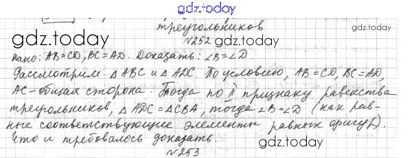 Ответы к §11. Третий признак равенства треугольников Решение к главе 2. Треугольники 252 Учебнику по Геометрии для 7 класса Мерзляк, Полонский Вентана-граф Алгоритм успеха 2017