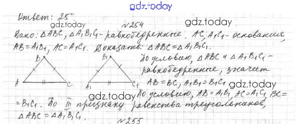 Ответы к §11. Третий признак равенства треугольников Решение к главе 2. Треугольники 254 Учебнику по Геометрии для 7 класса Мерзляк, Полонский Вентана-граф Алгоритм успеха 2017