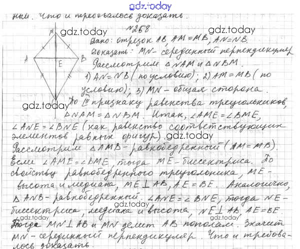 Ответы к §11. Третий признак равенства треугольников Решение к главе 2. Треугольники 258 Учебнику по Геометрии для 7 класса Мерзляк, Полонский Вентана-граф Алгоритм успеха 2017