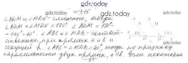 Ответы к §14. Признаки параллельности двух прямых Решение к главе 3. Параллельные прямые. Сумма углов треугольника 315 Учебнику по Геометрии для 7 класса Мерзляк, Полонский Вентана-граф Алгоритм успеха 2017